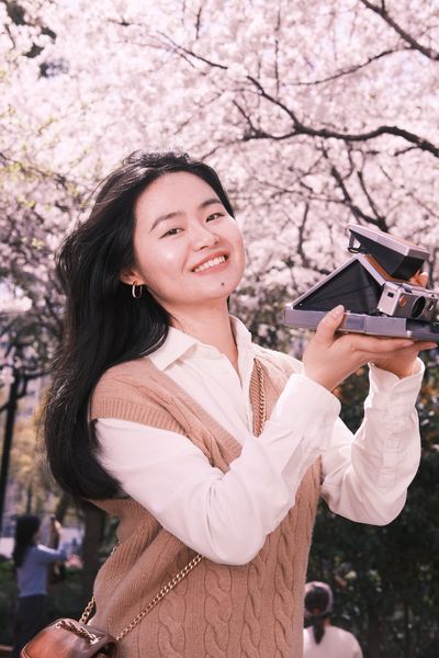 在东昌路地铁站的樱花树下,给朋友拍摄的照片。春天,樱花,女孩,微笑,富士相机定格下的这个瞬间,一切都和煦而又美好。